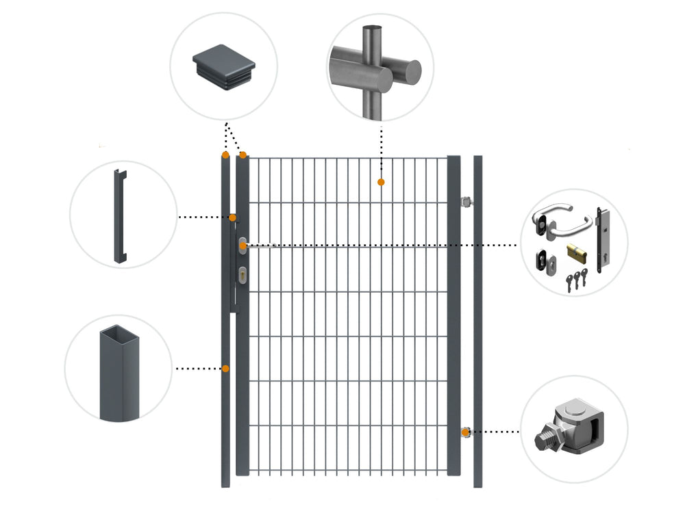 - Komplett ausgestattet: Inklusive Rohrrahmenschloss, Schließzylinder mit 3 Schlüsseln, Drückergarnitur und passenden Zaunanschlüssen.