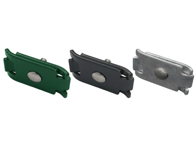 Hergestellt aus feuerverzinktem Stahl, sind die Verbinder in drei Farben erhältlich: Anthrazit (RAL 7016), Grün (RAL 6005) und Silber (feuerverzinkt). Die pulverbeschichteten Varianten sorgen für zusätzlichen Schutz und Langlebigkeit.
